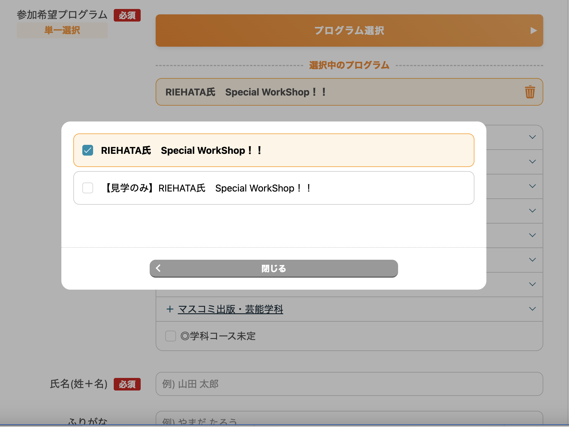 「【見学のみ】RIEHATA氏 Special WorkShop!!」を選択